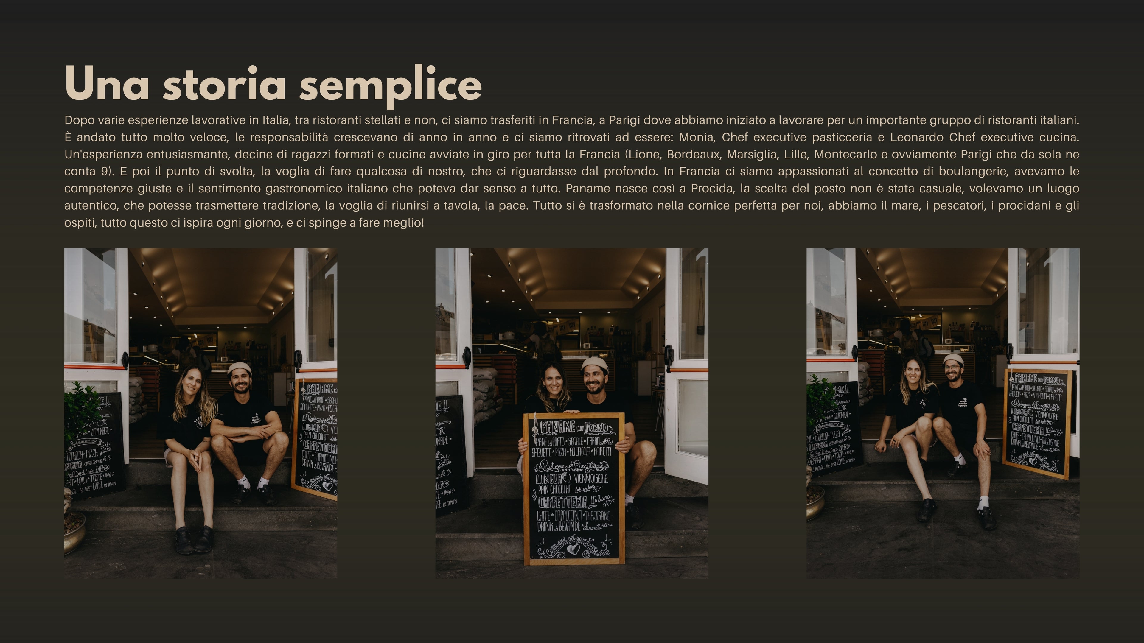 Paname è un forno artigianale e indipendente che nasce il 27 luglio del 2023, nell’isola di Procida, un punto di incontro tra l’arte della pasticceria e della panificazione, in un contesto gioviale e accogliente. Una piccola realtà di quartiere, che vuole mettere al centro del commercio il ruolo e la sapienza dell’artigiano, mostrando alle nuove generazioni quanto possa essere “cool” fare il pane! Siamo partiti in due, Monia e Leonardo, oggi siamo in 10! Dalla nostra avevamo conoscenza del mestiere ed una forte passione, quello che dovevamo aggiungere era il coraggio! Lo abbiamo fatto e ad appena un anno dall’apertura ci sembra di aver vissuto la più estenuante ma divertente avventura della nostra vita! Paname è un panificio e una pasticceria.